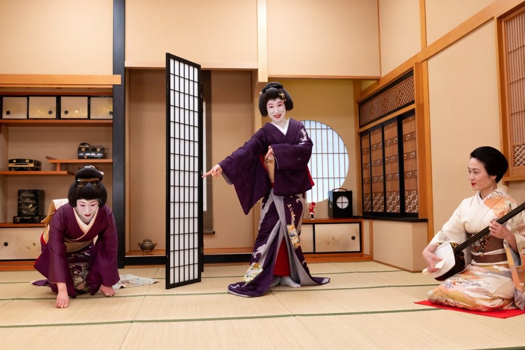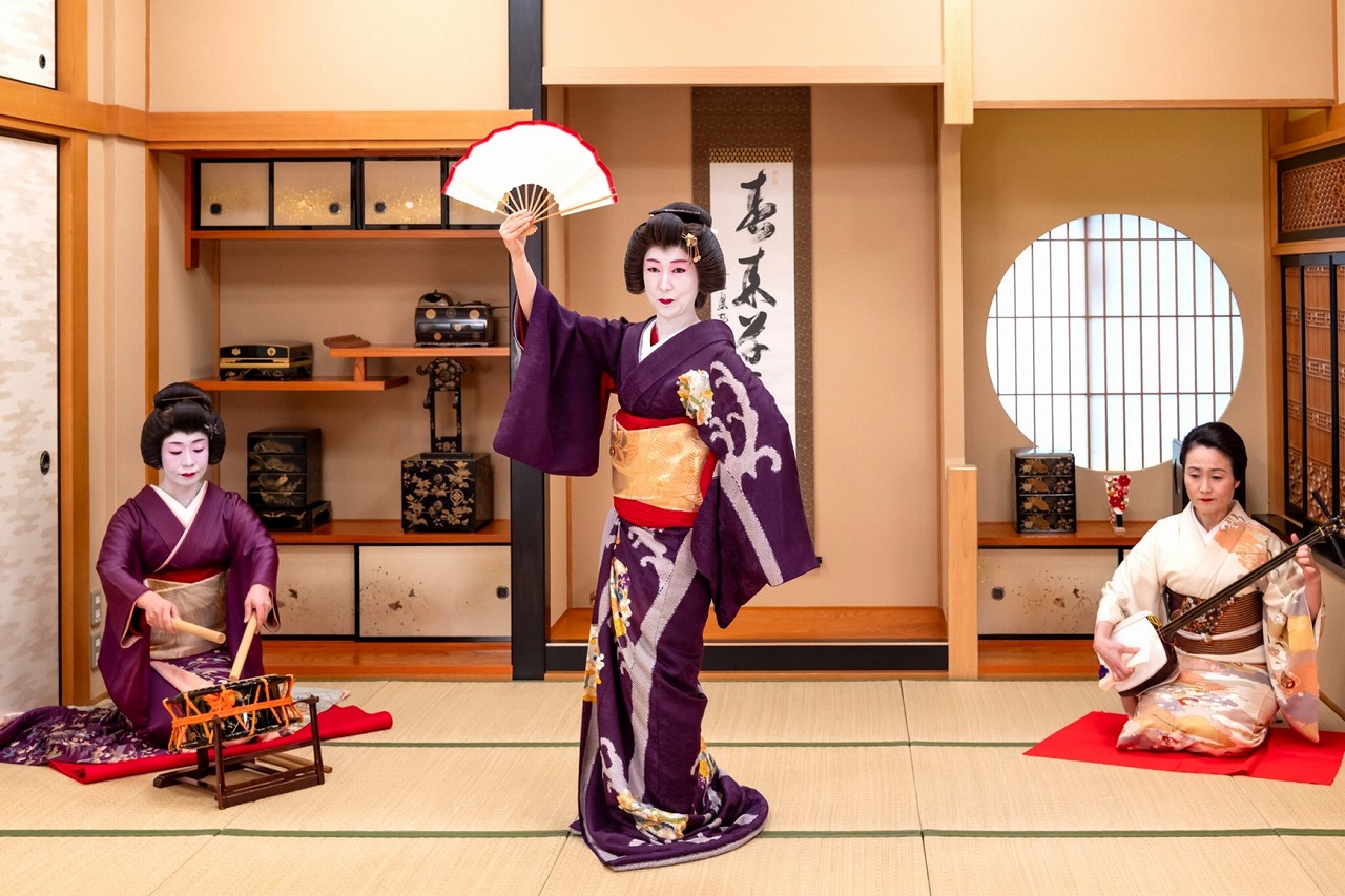 本ものの芸者さんが粋で優雅な日本の伝統的エンターテイメントの世界に誘います。