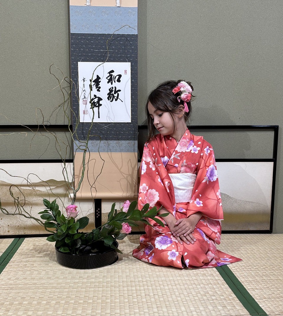 ご家族で着物を着て華道体験を楽しんでいただきました!お嬢様…